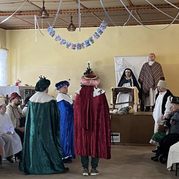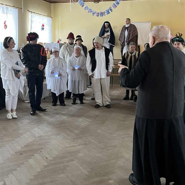 Po wspólnej modlitwie, w trakcie dalszej części spotkania, grupa uczestników ŚDS pod opieką artystyczną pani Renaty Nowickiej zaprezentowała się w bożonarodzeniowym występie, który został bardzo ciepło przyjęty przez widzów. A potem był czas na wspólną zabawę, poczęstunek i miłe rozmowy.