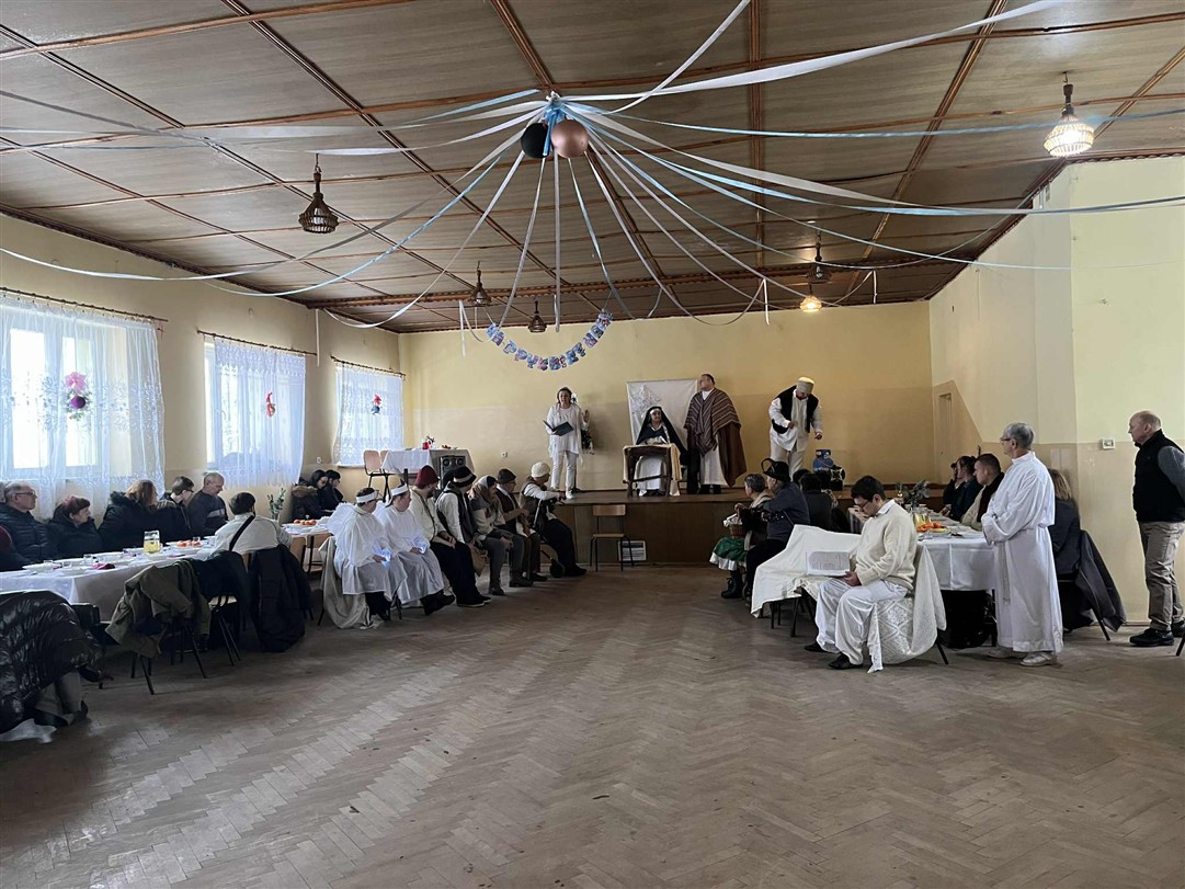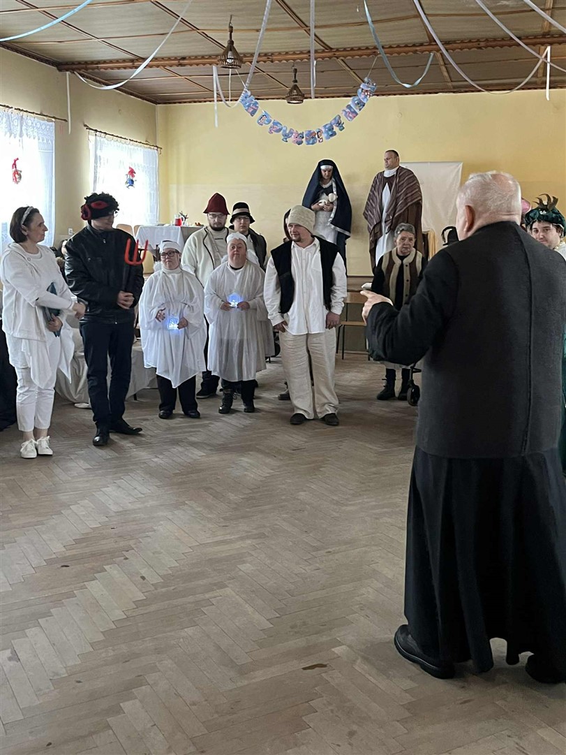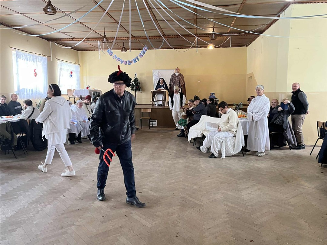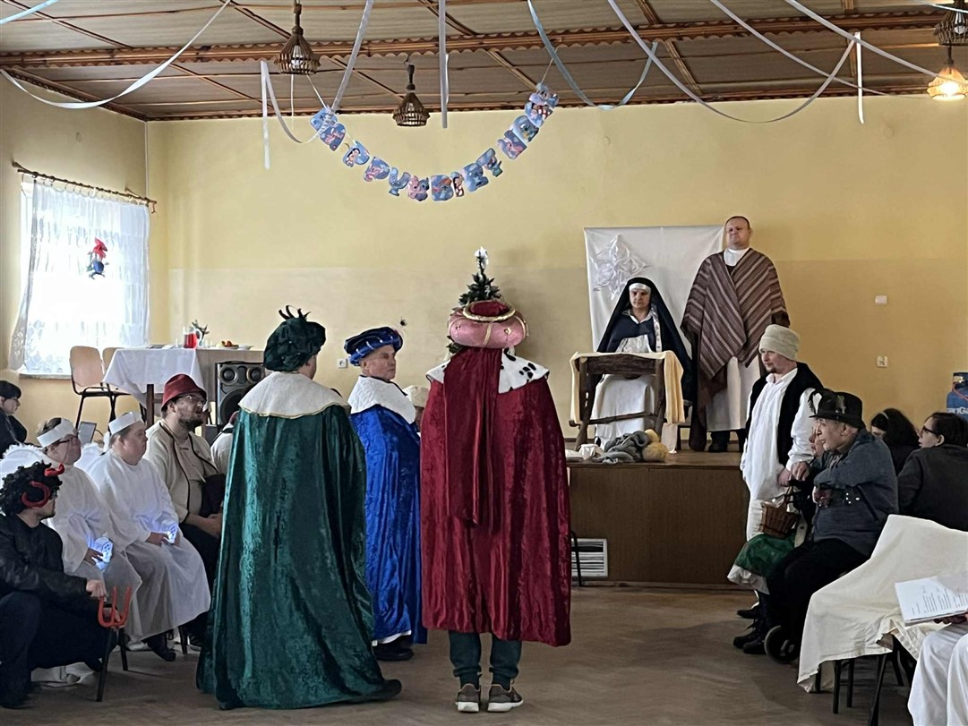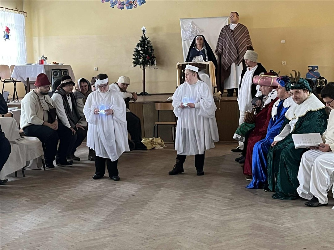 Po wspólnej modlitwie, w trakcie dalszej części spotkania, grupa uczestników ŚDS pod opieką artystyczną pani Renaty Nowickiej zaprezentowała się w bożonarodzeniowym występie, który został bardzo ciepło przyjęty przez widzów. A potem był czas na wspólną zabawę, poczęstunek i miłe rozmowy.