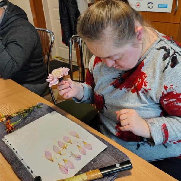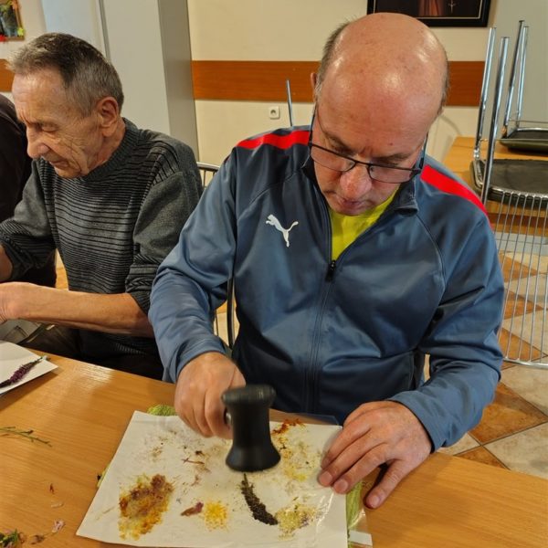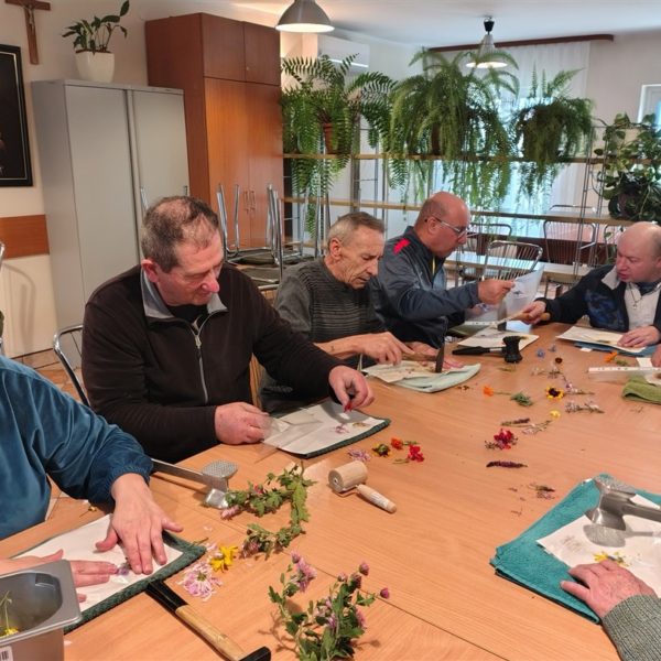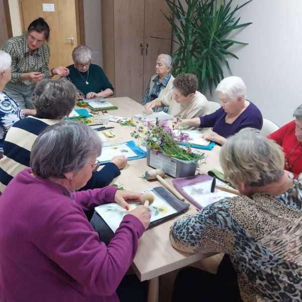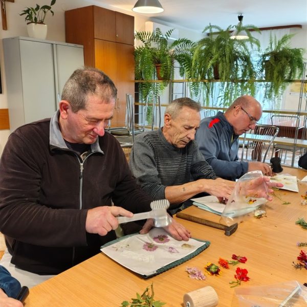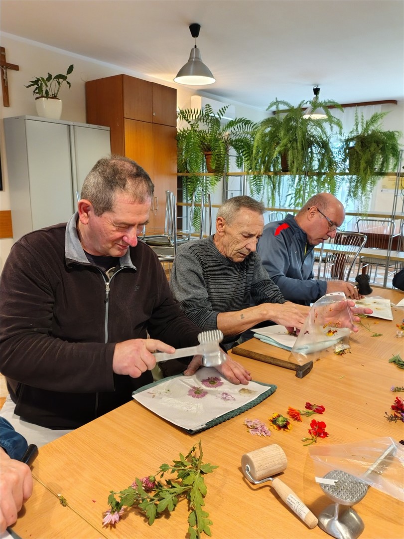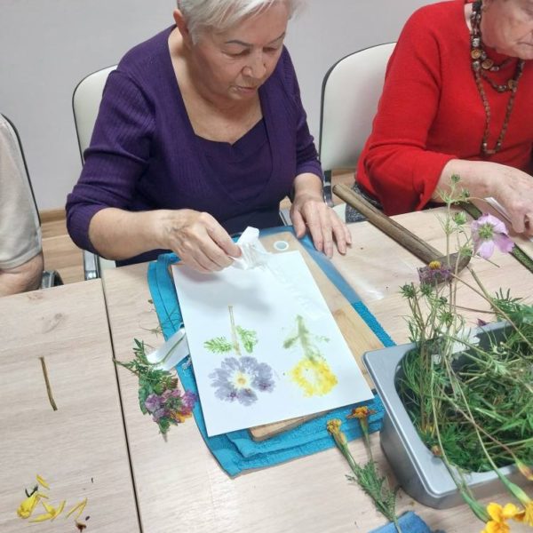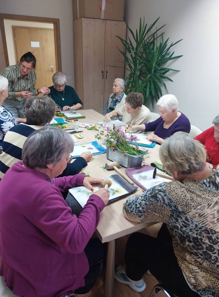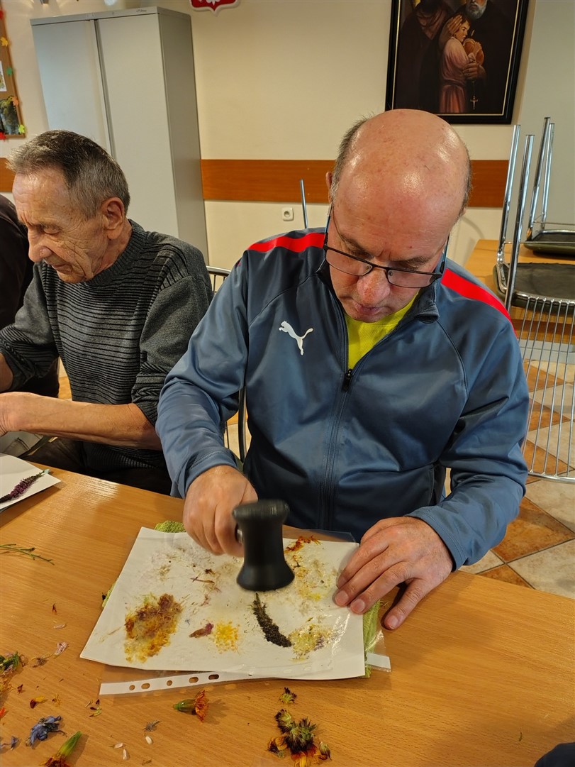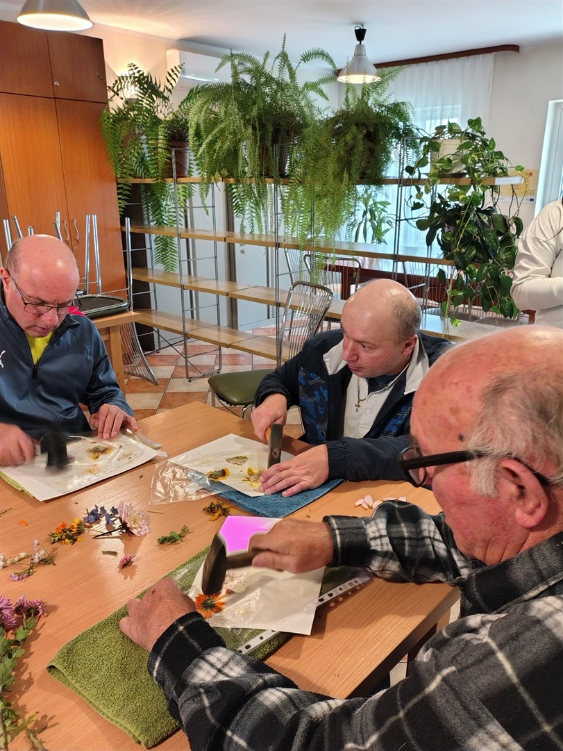 W ramach projektu pn. „W naturze i z naturą” uczestnicy mieli okazję poznać technikę flower pounding, czyli ubijanie świeżych kwiatów na papierze akwarelowym. Co prawda trzeba się trochę napracować, ale potem jest radość, gdy widzi się kwiatowe obrazy.